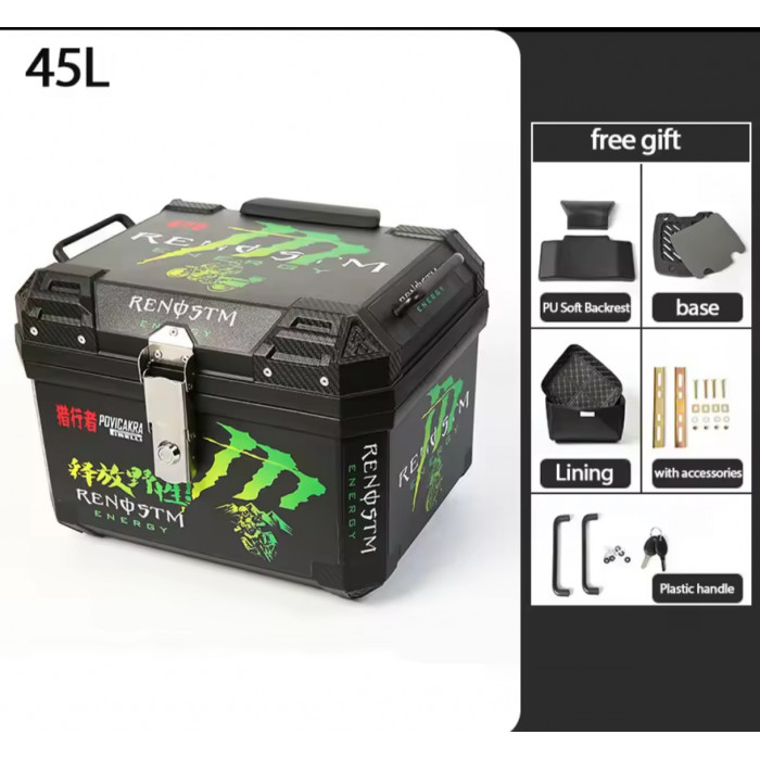 Кофр задній Monster 45 л на мотоцикл універсальний пластиковий, чорний