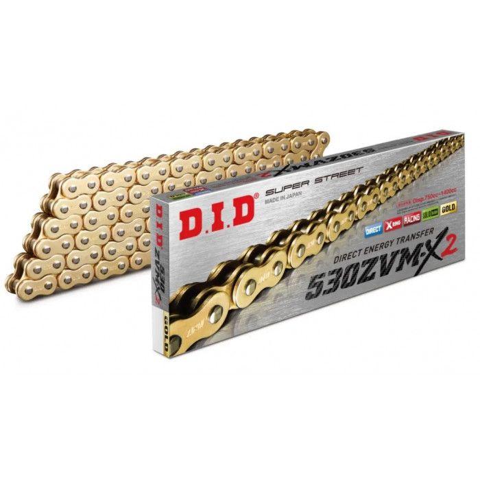 Купить усиленную мото цепь DID 50(530)ZVM-X, можно у нас оформив заказ на сайте.