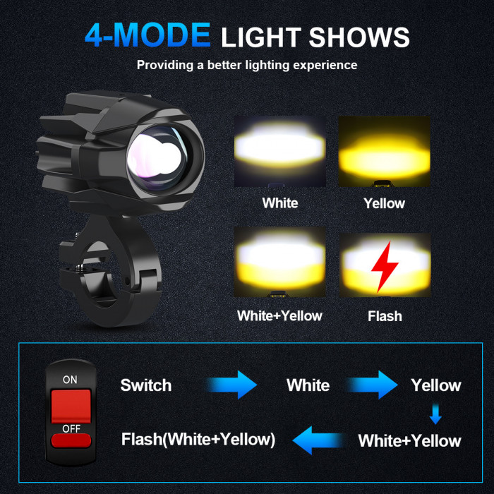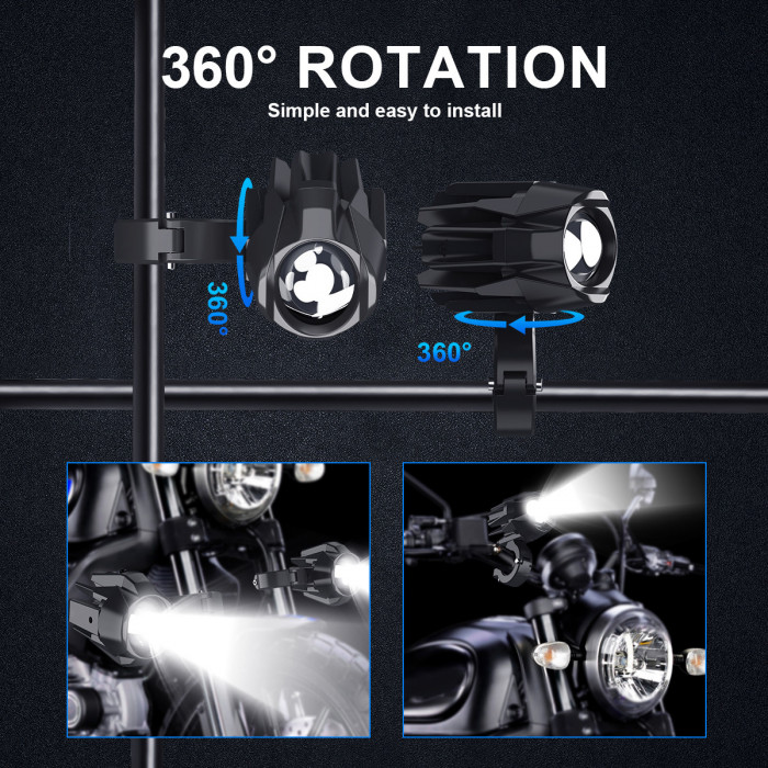 Противотуманки дополнительные светодиодные мото led фары универсальные на мотоцикл ближний и дальний свет